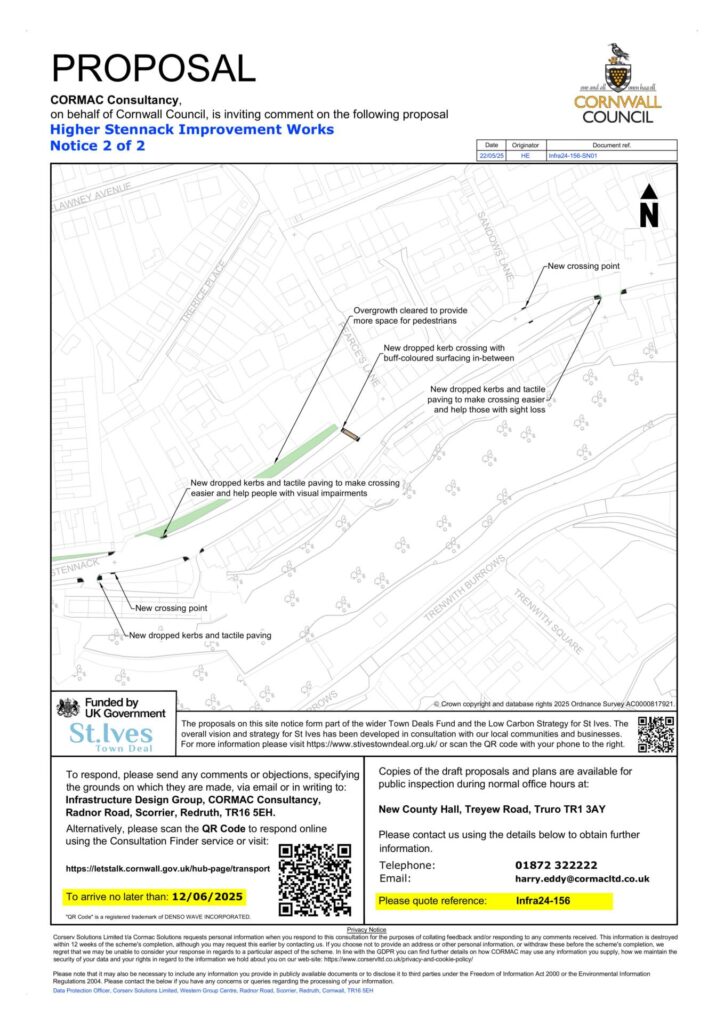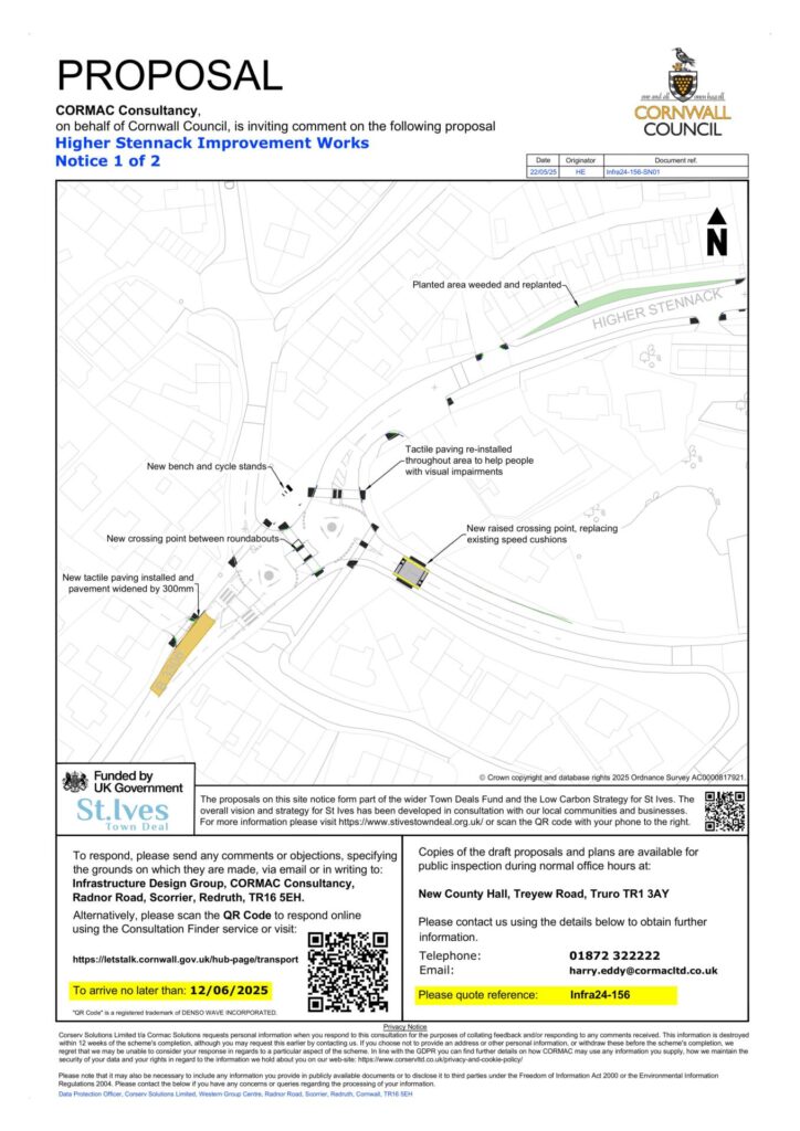 Plans to make the area around Higher Stennack in St Ives safer and more welcoming for local people and visitors have been published for statutory consultation.